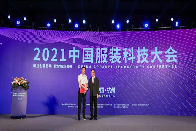 2021年7月28日,检阅中国服装产业最高水平的“中国服装科技大会” 在杭州市召开,并举行了2021年度颁奖典礼,国际纺联、工信部、中国纺织工业联合会、中国服装协会、中国服装设计师协会、中国服装科创研究院等国内纺织服装领域顶级专家和企业家等悉数出席。大会主要表彰了2021年度中国服装行业科技进步奖、中国服装专利奖、中国服装行业技术创新示范企业,会议还发布了2021年度服装行业用优秀新技术成果及解决方案。