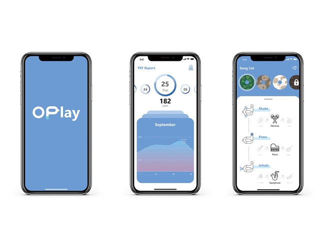 “OPlay”作品是从交互关系角度对产品创新设计的探索,在带给孩子娱乐体验的同时帮助儿童克服peer pressure,正确地使用产品,更好地认识与接受自己身体的状况。它将乐器演奏的形式融入到医疗产品的使用中,把枯燥的治疗转变成孩子的演奏会,兼具气雾剂、峰速仪两种功能,将复杂的用药和检测,拆解成了简单的动作与步骤,在每个操作阶段都有灯光指引以及音乐反馈。同时,家长与孩子可在App上跟踪记录以及选择更换乐器与乐曲。