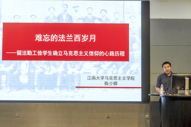 马克思主义成人网站青年教师陈少卿以《难忘的法兰西岁月》为题开展党课第一讲,讲述了20世纪初在旅法留学的美好设想和残酷现实的背景下,来自不同阶层、出于不同目的的留法学生们产生了不同流派,最终在留法勤工俭学生中锤炼了一批革命代表,培养了大批研究马克思主义的先驱的生动事迹。最后陈老师总结,实践证明了马克思主义的正确性,理论提供方向,生活提供决心,信仰需要经历实践的磨砺才能真正确立。在座同学听之心神激荡,深受启发,在热烈的掌声中,第一讲党课圆满结束。