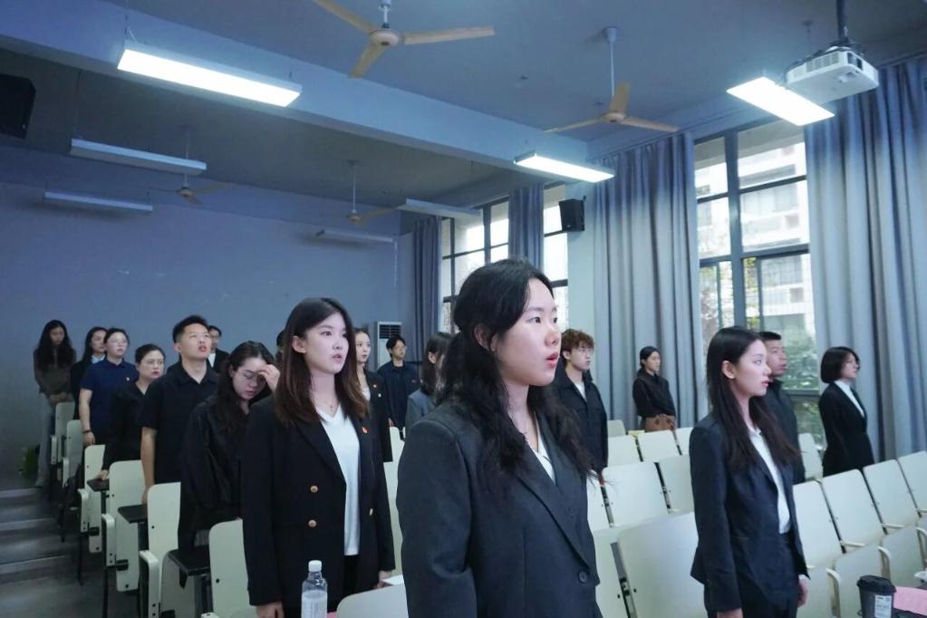 大会正式开幕,研究生代表大会中的所有师生起立共唱国歌,共贺中国人民抗日战争暨世界反法西斯战争胜利80周年,为祖国献上最真挚的敬意。